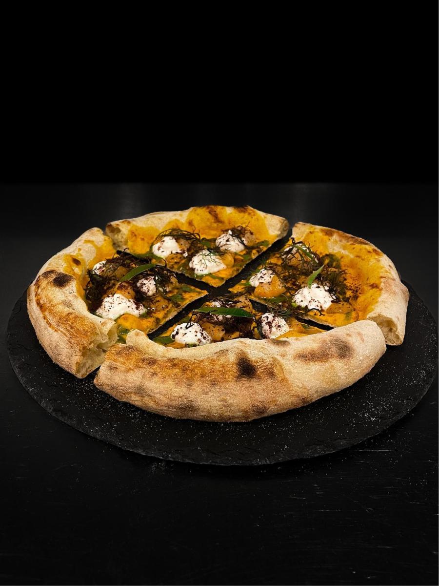 La pinsa siciliana nasce dall’incontro tra la tradizione della pinsa romana e le materie prime della nostra terra
